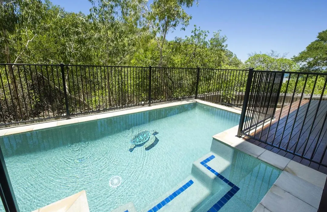 Shipwreck Sands Picnic Bay villa ligt binnen 3 km van Nelly Bay to Arcadia Trail en nodigt gasten uit om te ontspannen op een patio.
